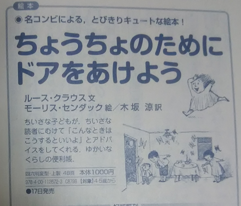 5月発売予定の絵本の広告をみた。ネット上では画像は皆無だけど、紙の広告でイメージ紹介してるというのは、ちょっとうれしい。
